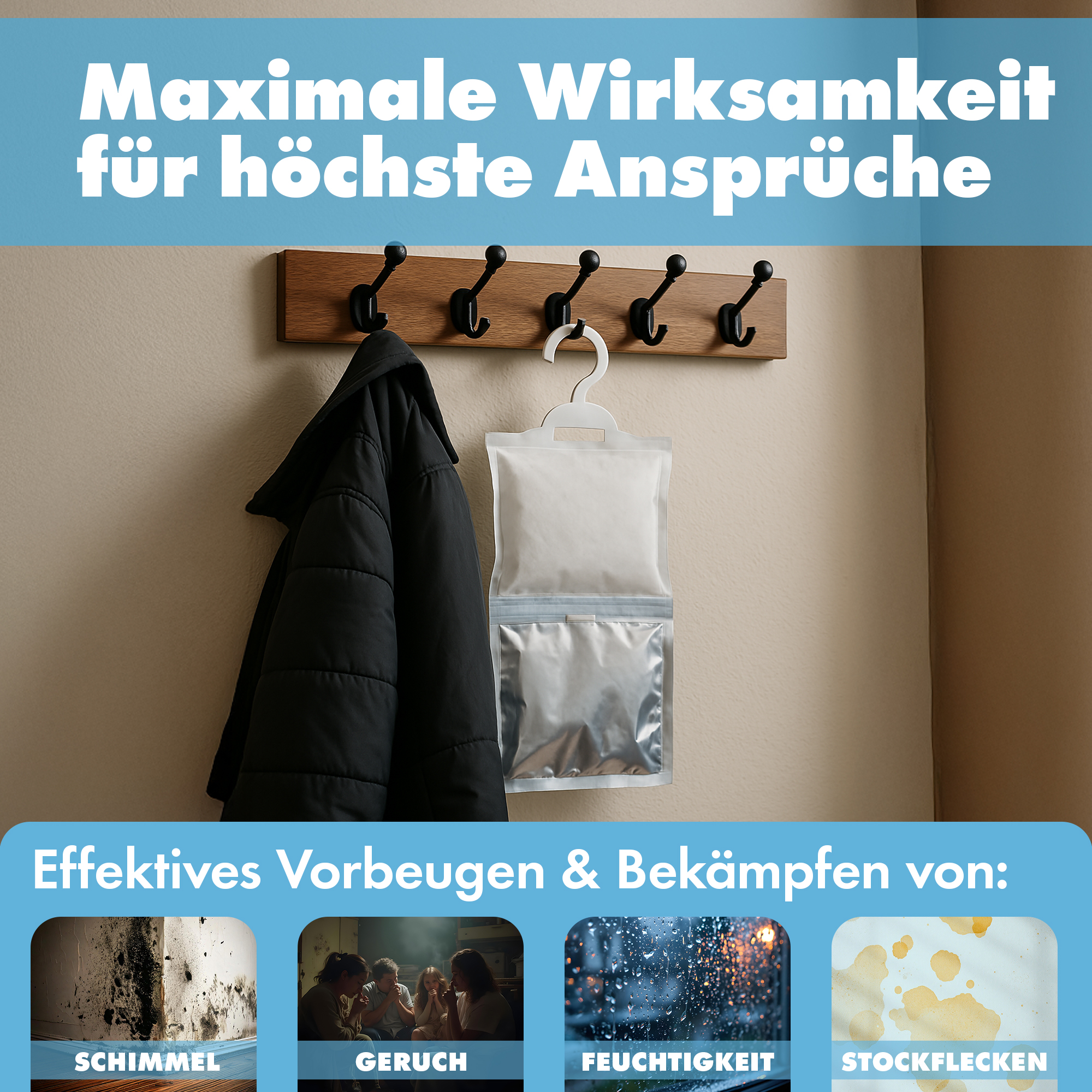 - Vielseitig: Perfekt für Kleiderschränke, Garderoben, Autos, Wohnmobile oder Boote. Dank des praktischen Aufhängers kann der Luftentfeuchter flexibel platziert werden und sorgt überall für optimale Luftfeuchtigkeit.
