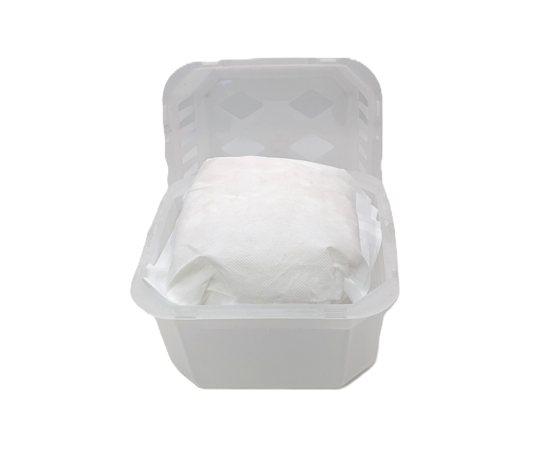 Nach dem Auspacken des Vliesbeutels saugt das Granulat die überschüssige Luftfeuchtigkeit auf und verhärtet dabei (verklumpt). Wenn es entsprechend angereichert (vollgesogen) ist, wird die Feuchtigkeit in flüssiger Form in den unteren Teil der Raumentfeuchterbox abgegeben.