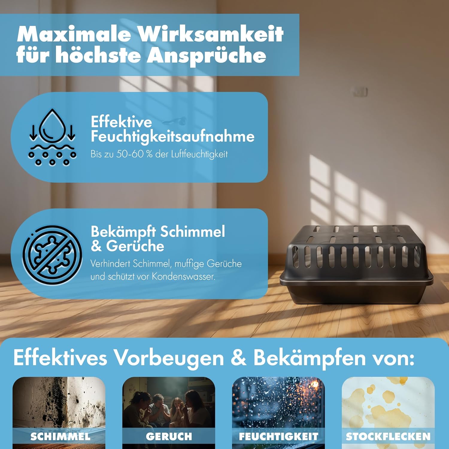 • EFFIZIENTER FEUCHTIGKEITSSCHUTZ: Verhindert Schimmelbildung und reduziert unangenehme Gerüche. Perfekt, um in Lager- oder Kellerräumen Ihre Wertsachen zu schützen und die Luftqualität zu verbessern.